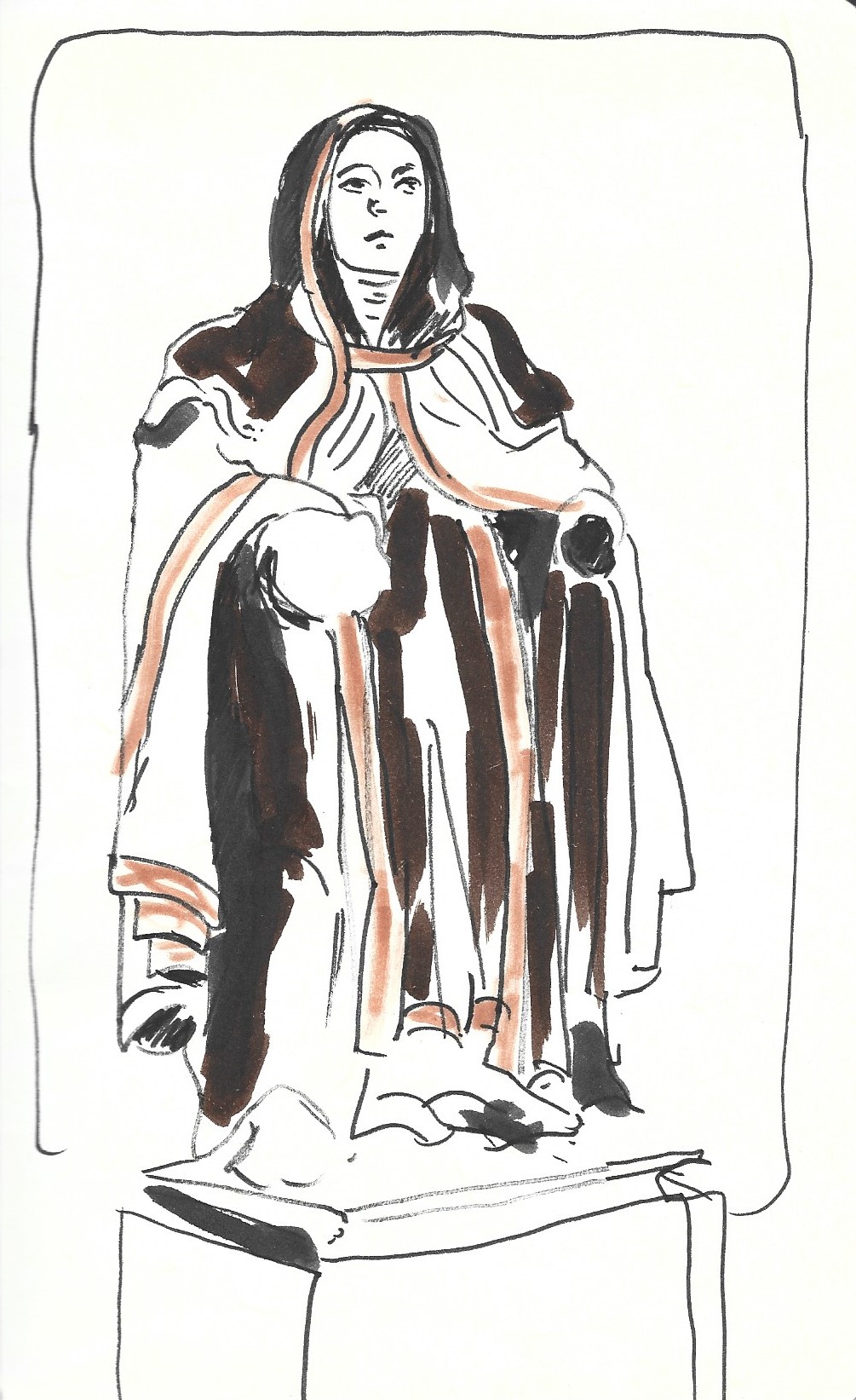 2 dibujillos de los 5 que he realizado esta mañana en el Hotel monasterio del puerto de Santa maría. 2 imágenes que formaban parte de la iglesia del monasterio, ya desacralizadas, ahora piezas de adorno en los pasillos del hotel.